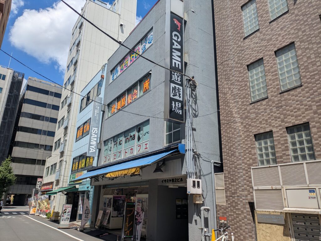 このビルの3~5階がスーパーポテトで5階がスーパーポテト運営のレトロゲームセンターとなっています