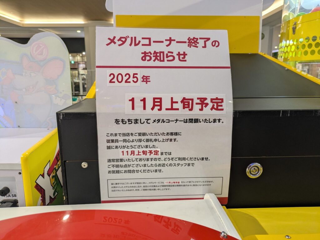 またしてもメダルゲームが遊べる店が減っていきますね…