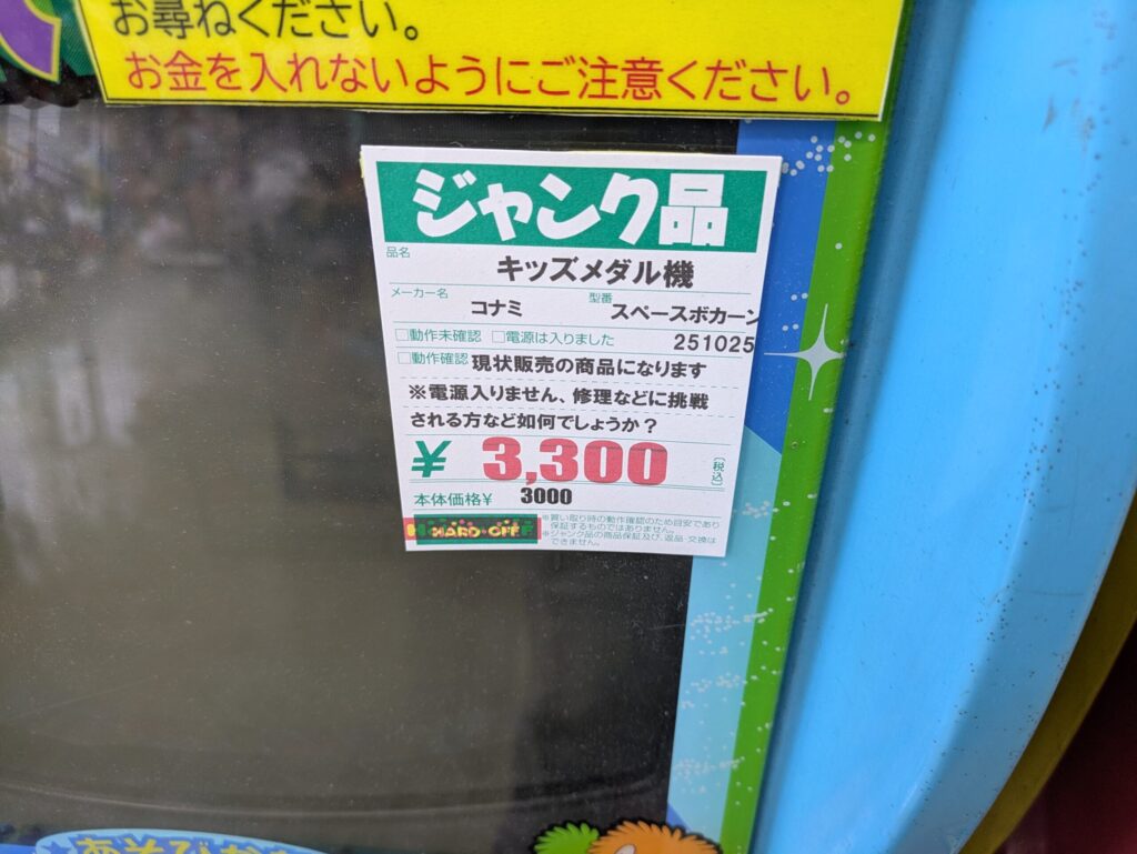 どぼちゃん、ぶっとびストライカー、スペースポカーン、大砲でドボーンは電源が入らないという事で3300円とかなり安め、自分で直せるならお買い得だと思います